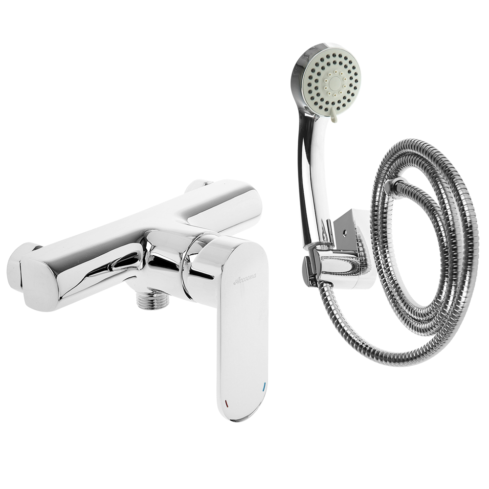 смеситель; комплект эксцентриков; настенный держатель; шланг; ручная лейка; инструкция.