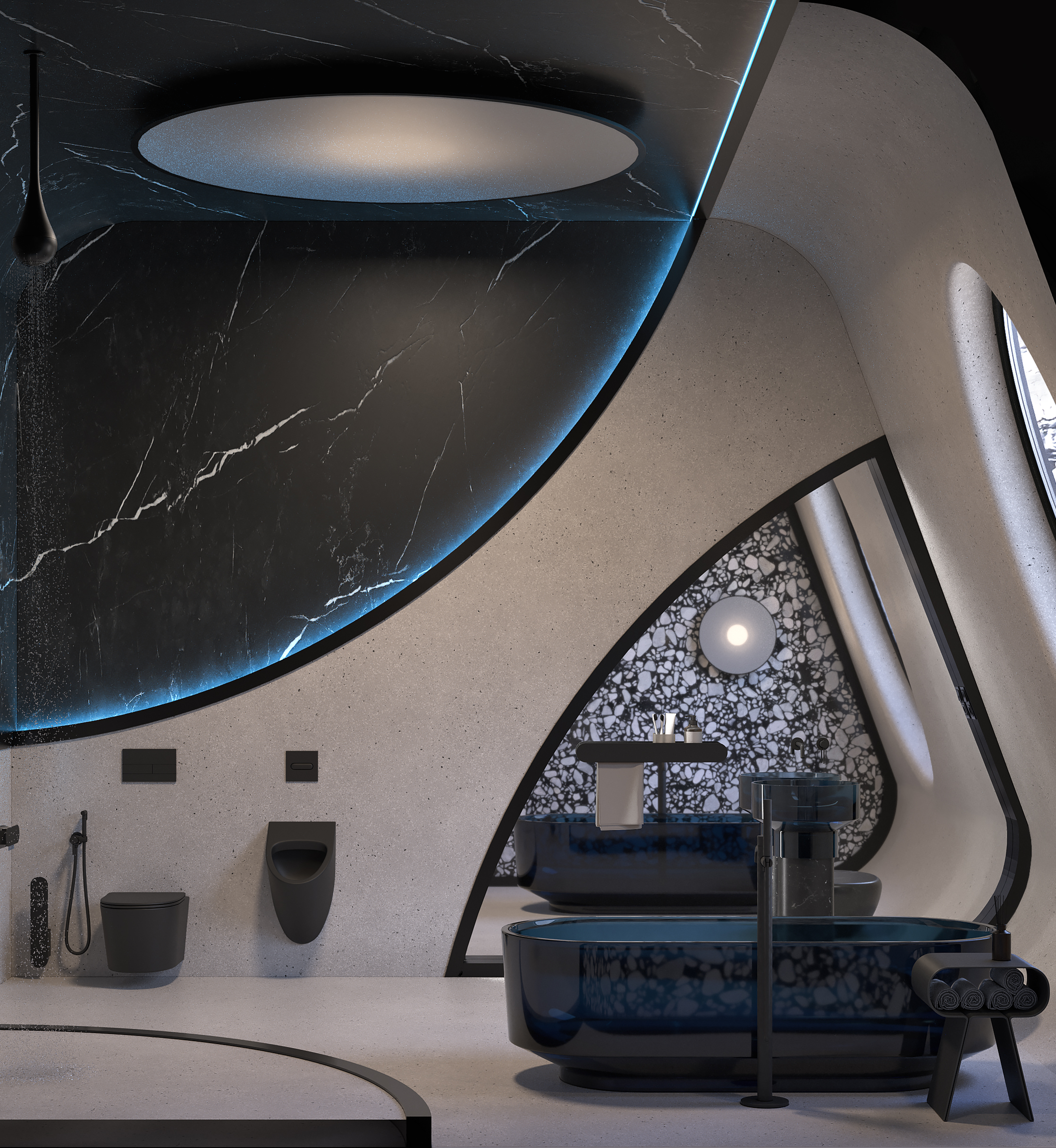 Основными задачами в проектировании ванной комнаты являются функциональность, практичность и эстетика. В процессе создания дизайна удалось соблюсти все основы и гармонично сочетать их между собой. В такой ванной комнате можно легко отключиться от внешнего мира и погрузиться в особую атмосферу.